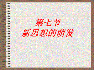 第七节第七节 新思想的萌发新思想的萌发一、新思想萌发的原因。一、新思想萌发的原因。1、当时中国思想界的、当时中国思想界的概况概况。2、新思想萌发的、新思想萌发的思想基础思想基础。3、新思想萌发的、新思想萌发的条件条件。(程朱理学)(鸦片战争)经世致用面对现实,注重实效。是封建的传统思想。二、新思想的萌发。(一)林则徐1 1、设译馆:、设译馆:翻译翻译各国律例各国律例、四洲志四洲志2 2、仿制西方战舰、仿制西方战舰 -迈出了迈出了“师夷长技师夷长技”的第一的第一步步(近代中国“开眼看世界”的第一人)试概括林则徐的活动。(二)魏源 看教材看教材P30P30材料,思考:材料,思考:1 1)“是书是书”是指哪本书?其主要的是指哪本书?其主要的参参 考资料是什么?考资料是什么?2 2)该书阐述了作者什么思想?)该书阐述了作者什么思想?3 3)该书的特点是什么?)该书的特点是什么?4 4)该书有什么作用?)该书有什么作用?海国图志思考:林则思考:林则徐、魏源思徐、魏源思想有何作用?想有何作用?(三)姚莹:(三)姚莹:康輶纪行康輶纪行(四)徐继畬:(四)徐继畬:瀛环志略瀛环志略应如何评价林则徐及魏源等人的思想呢?1 1)积极:鲜明的时代印记)积极:鲜明的时代印记2 2)浓重的封建纲常色彩。)浓重的封建纲常色彩。三、具有资本主义色彩的三、具有资本主义色彩的 资政新篇资政新篇(18591859)1 1、内容:、内容:政治、经济、政治、经济、文教、外交文教、外交2 2、评价:进步性、局限性、评价:进步性、局限性1 1、比较林则徐、魏源与洪仁比较林则徐、魏源与洪仁玕思想的玕思想的异同异同?2 2、资政新篇资政新篇是是天朝田亩天朝田亩制度制度的发展与继续吗?为什么?的发展与继续吗?为什么?同:同:都向西方学习;都向西方学习;都进行进步性、爱国性的探索;都进行进步性、爱国性的探索;都未付诸实施;都未付诸实施;没有从根本上改变中国社会。没有从根本上改变中国社会。异:异:阶级立场不同;阶级立场不同;根本目的不同;根本目的不同;学习西方的层次不同。学习西方的层次不同。鸦片战争的失败开眼看世界洋务运动、戊戌变法林则徐魏源姚莹徐继畬小结:具有资本主义色彩的资政新篇:(洪仁玕)“师夷长技以制夷”思想