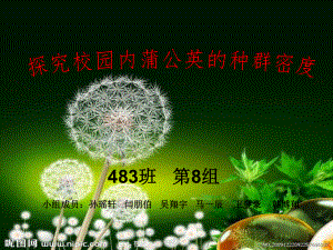 483班班 第第8组组小组成员:孙瑶轩小组成员:孙瑶轩 闫朋伯闫朋伯 吴翔宇吴翔宇 马一辰马一辰 卫昱豪卫昱豪 韩博翔韩博翔 活动目的活动目的:1.通过活动掌握种群密度通过活动掌握种群密度调查法的知识与技能调查法的知识与技能。2.通过调查过程培养学生通过调查过程培养学生科学的思维和方法。科学的思维和方法。3.通过调查活动掌握科学通过调查活动掌握科学探究问题的方法和步骤。探究问题的方法和步骤。活动过程活动过程:1.确定调查对象。确定调查对象。2.选取样方:必须选择选取样方:必须选择一个该种群分布较均匀一个该种群分布较均匀的地块,使其具良好的的地块,使其具良好的代表性。代表性。活活 动动 内内 容容 探究原理:探究原理:种群在单位面积或单位体积中的个体数就是种群在单位面积或单位体积中的个体数就是种群密度。在被调查种群的分布范围内,随机选取若干个种群密度。在被调查种群的分布范围内,随机选取若干个样方,通过计数每个样方内的个体数,求得每个样方的种样方,通过计数每个样方内的个体数,求得每个样方的种群密度,以所有样方种群密度平均值作为该种群的种群密群密度,以所有样方种群密度平均值作为该种群的种群密度估计值。度估计值。探究器材:探究器材:绳子、米尺绳子、米尺 探究方法:探究方法:1、五点取样法、五点取样法2、等距取样法、等距取样法取取 样样 方方 法法 五点取样法五点取样法:当调查的总体为非长条形时,在总体中按梅花形取5个样方,每个样方的长和宽要求一致。这种方法适用于调查植物个体分布比较均匀的情况。如右图 等距取样法等距取样法:当调查的总体为长条形时,先将调查总体分成若干等份,由抽样比率决定距离或间隔,然后按这一相等的距离或间隔抽取样方的方法。如右图采采 样样 数数 据据 多组数据表明,种群密度为6(株/m2)采采 样样 注注 意意 事事 项项 不能随意更换位置和面积。选取总面积大的相应样方也应多取些。计数时若有正好长在边界上的,只计样方相邻两条边及顶角上的个体(即计上不计下,计左不计右)植物的大小不同,样方的面积也应不同。要大胆舍弃特别悬殊的数值,取多组邻近的平均值。活活 动动 意意 义义 1.通过调查活动能够培养我们热爱科学、热爱自然的情感态度与价值观的形成、提升。2.理论与实践相结合进一步激发了我们学习生物的热情。3.提高了我们的实验探究能力和动手操作能力。