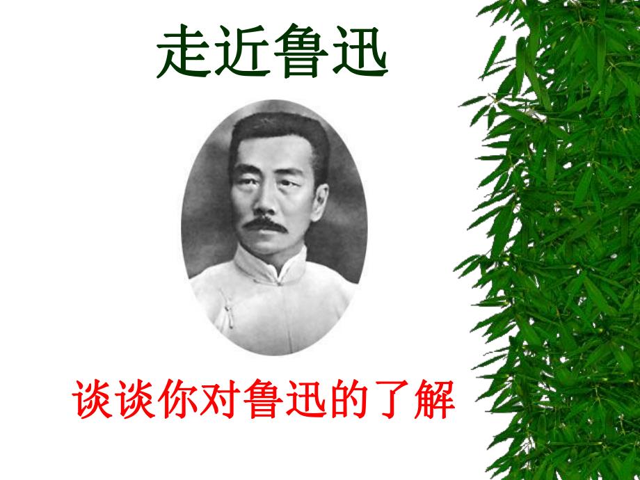 走近鲁迅走近鲁迅谈谈你对鲁迅的了解谈谈你对鲁迅的了解赶快收殓、埋掉,拉倒赶快收殓、埋掉,拉倒忘记我,管自己的生活忘记我,管自己的生活注意节奏注意节奏与重音!与重音!有感情地朗读诗歌有感情地朗读诗歌有的人活着,他已经死了;有的人活着,他已经死了;有的人死了,他还活着有的人死了,他还活着有的人,骑在人民头上:有的人,骑在人民头上:“呵,我多伟大!呵,我多伟大!”有的人,俯下身子给人民当牛马有的人,俯下身子给人民当牛马有的人,把名字刻入石头,想有的人,把名字刻入石头,想“不朽不朽”!有的人,情愿作野草,等着地下的火烧有的人,情愿作野草,等着地下的火烧有的人,他活着别人就不能活;有的人,他活着别人就不能活;有的人,他活着为了多数人更好地活有的人,他活着为了多数人更好地活骑在人民头上的,人民把他摔垮;骑在人民头上的,人民把他摔垮;给人民作牛马的,人民永远记住他!给人民作牛马的,人民永远记住他!把名字刻入石头的,名字比尸首烂得更早;把名字刻入石头的,名字比尸首烂得更早;只要春风吹到的地方,到处是青青的野草只要春风吹到的地方,到处是青青的野草他活着别人就不能活的人,他的下场可以看到;他活着别人就不能活的人,他的下场可以看到;他活着为了多数人更好地活着的人,群众把他抬举得很高,很高。