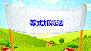 等式加减法等像式天平观察图中的规律,请按照这种规律填空:根据下面的等式填空:等式两边同时加上或减去同一个数,等式依然成立.已知:A+27=46,B-31=9.那么:A+B=?等间式加减针对两个等式之间的加减:7+8=159+1=10已知:A+C=48B+C=16求:A-B=?已知:3+3=423+4=47求:=?=?已知:大+小=48大-小=16求:大=?小=?已知:+=121-=21求:=?=?由等式间的加减推出和差公式:(有时要整体思考)已知:大+小=50大-小=20求:大=?小=?已知:5+=121-5=21求:=?=?等应式用题果果去面包房买点心,买2块菠萝面包和3个蛋挞共用去35元,又知道2块菠萝面包比3个蛋挞贵5元,请问果果买1个蛋挞和一块菠萝面包共用多少元钱?(每块菠萝面包的价钱一样,每个蛋挞的价钱也一样)爸爸做家具,做2把椅子和1张桌子共用11小时,做1张桌子的时间比2把椅子少用1小时,那么爸爸做1把椅子用了多长时间,做1张桌子用了多长时间?(做每张桌子的时间相同,做每把椅子的时间也一样)应用题求解方法:我们PK吧练习2饲养场出售鸡和鸭,如果买2只鸡、1只鸭一共要付33元,如果买2只鸡、3只鸭一共要付51元,问1只鸡和1只鸭各花多少钱?(每只鸡的价格一样,每只鸭的价格也一样)练习3农场有一些牛和羊,3头牛和4只羊共吃青草96千克,1头牛和4只羊共吃青草56千克,问1头牛和1只羊一天一共吃青草多少千克?(每头牛吃的草一样多,每只羊吃的草一样多)练习4草地上有许多兔子,已知黑兔和白兔共有6只,黑兔与灰兔共有7只,白兔与灰兔共有5只,问:(1)草地上共有多少只兔子?(2)三种兔子各有多少只?练习5今年,妈妈和妹妹的年龄和是40岁,妈妈和哥哥的年龄和是42岁,妹妹和哥哥的年龄和是12岁,今年,妈妈、妹妹和哥哥的年龄分别是多少岁?练习6小军家养了一些大白兔和小花猫,有一天,小军抱着2只大白兔一起站在体重计上一称,正好是45千克;后来小军放下大白兔又抱着3只小花猫,站在体重计上一称,正好是47千克;最后小军把6只小花猫和4只大白兔一起放在体重计上称一称是44千克.请你算一算:小军、大白兔和小花猫各是多少千克?(每只大白兔的重量一样,每只小花猫的重量一样)下次见,宝贝!回课下家