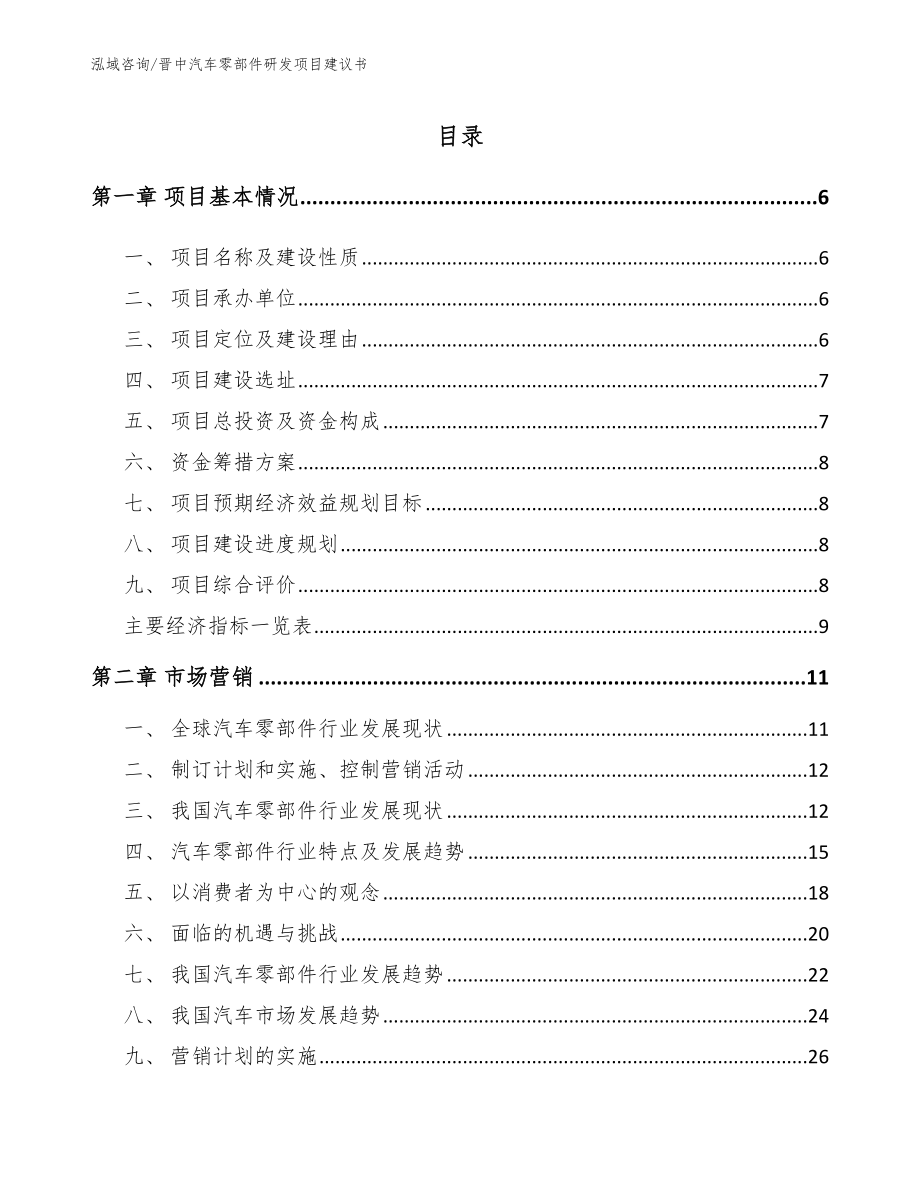 本报告仅作为投资参考或作为学习参考模板用途第一章 项目基本情况一、 项目名称及建设性质(一)项目名称晋中汽车零部件研发项目(二)项目建设性质本项目属于扩建项目二、 项目承办单位(一)项目承办单位名称xxx有限公司(二)项目联系人尹xx三、 项目定位及建设理由随着汽车工业的不断发展,汽车零部件企业的独立化和专业化发展趋势也越来越明显汽车零部件制造业对汽车整车企业的配套供应也逐渐系统化、模块化系统化、模块化供应是指零部件企业以系统或模块为单元向整车厂或上级零部件供应商提供产品系统化和模块化的供应模式可以充分利用零部件企业的专业生产优势,缩短了新产品的开发周期十三五”时期是全面建成小康社会决胜阶段,也是我市经济社会发展各项事业实现历史性突破、迈向高质量发展的关键阶段五年来,在市委坚强领导下,按照省委“四为四高两同步”总体思路和要求,紧紧围绕高质量转型发展主题,笃定前行、砥砺奋进,全市地区生产总值跨过千亿大关后,2020年达到1468.8亿元;一般公共预算收入由100.2亿元增加到168.7亿元,全省第三;固定资产投资达到827.2亿元,稳居全省第二;粮食产量达到15亿公斤,连续五年喜获丰收十三五”规划目标任务总体完成,全面建成小康社会胜利在望,综合实力迈上新台阶。