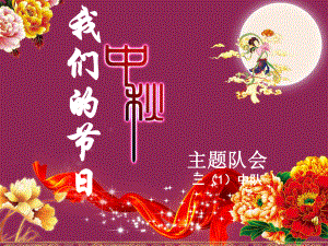 主题队会主题队会三(三(1 1)中队)中队 我们的节日我们的节日中国少年先锋队队歌 我们是共产主义接班人我们是共产主义接班人继承革命先辈的光荣传统继承革命先辈的光荣传统 爱祖国爱人民爱祖国爱人民 鲜艳的红领巾飘扬在前胸鲜艳的红领巾飘扬在前胸不怕困难不怕困难,不怕敌人不怕敌人顽强学习顽强学习,坚决斗争坚决斗争 向着胜利勇敢前进向着胜利勇敢前进 向着胜利勇敢前进前进向着胜利勇敢前进前进向着胜利勇敢前进向着胜利勇敢前进我们是共产主义接班人我们是共产主义接班人我们是共产主义接班人我们是共产主义接班人沿着革命先辈的光荣路程沿着革命先辈的光荣路程爱祖国爱人民爱祖国爱人民少先队员是我们骄傲的名称少先队员是我们骄傲的名称时刻准备时刻准备,建立功勋建立功勋要把敌人要把敌人,消灭干净消灭干净为着理想勇敢前进为着理想勇敢前进为着理想勇敢前进前进为着理想勇敢前进前进为着理想勇敢前进为着理想勇敢前进我们是共产主义接班人我们是共产主义接班人趣味谜语1、两叶花四朵,颜色白又黄,一年开一次,八月放异香。(打一植物)2、一只鸟儿没有毛,却在空中随风摇(打一玩具)3、头像绵羊颈似鹅,不是牛马不是骡,戈壁滩上万里行,能耐渴来能忍饿。(打一动物)十五夜望月寄杜郎中十五夜望月寄杜郎中唐唐 王建王建中庭地白树栖鸦,中庭地白树栖鸦,冷露无声湿桂花。冷露无声湿桂花。今夜月明人尽望,今夜月明人尽望,不知秋思落谁家。不知秋思落谁家。1 1、床前明月光,疑是地上霜。、床前明月光,疑是地上霜。2 2、举头望明月,低头思故乡。、举头望明月,低头思故乡。3 3、月下飞天镜,云生结海楼。、月下飞天镜,云生结海楼。4 4、举杯邀明月,对影成三人。、举杯邀明月,对影成三人。5 5、长安一片月,万户捣衣声。、长安一片月,万户捣衣声。6 6、明月出天山,苍茫云海间。、明月出天山,苍茫云海间。7 7、醉月频中圣,迷花不事君。、醉月频中圣,迷花不事君。8 8、却下水晶帘,玲珑望秋月。、却下水晶帘,玲珑望秋月。9 9、露从今夜白,月是故乡明。露从今夜白,月是故乡明。1010、我寄愁心与明月,随君直到夜郎西。我寄愁心与明月,随君直到夜郎西。月姐姐月姐姐 月姐姐,多变化,初一二,黑麻麻,月姐姐,多变化,初一二,黑麻麻,初三四,银钩样,初八九,似龙牙,初三四,银钩样,初八九,似龙牙,十一二,半边瓜,十五银盘高高挂。十一二,半边瓜,十五银盘高高挂。中秋月,净无暇,圆如镜子照我家。中秋月,净无暇,圆如镜子照我家。打麦场边屋檐下,照着地上小娃娃。打麦场边屋檐下,照着地上小娃娃。娃娃牵手同玩耍,转个圈儿眼昏花,娃娃牵手同玩耍,转个圈儿眼昏花,一不留神摔地下,连声喊痛叫妈妈。一不留神摔地下,连声喊痛叫妈妈。云里月姐说他傻,引得大家笑哈哈。云里月姐说他傻,引得大家笑哈哈。月饼圆又圆,月饼圆又圆,咬一口,香又甜,咬一口,香又甜,教我如何不想念教我如何不想念。盼中秋,等月圆,盼中秋,等月圆,月饼端上我心欢月饼端上我心欢,不等爷奶慢,不等爷奶慢,不管弟妹玩,不管弟妹玩,我先把上一快解解谗我先把上一快解解谗。啊,月饼好好吃个遍,啊,月饼好好吃个遍,管它肚子愿不愿。管它肚子愿不愿。活动方案活动方案 1.1.赏月赏月 2.2.拜月拜月 3.3.猜灯谜、逛灯会猜灯谜、逛灯会 4.4.吃月饼吃月饼 5.5.舞火龙舞火龙 6.6.燃灯燃灯明月寄相思明月寄相思