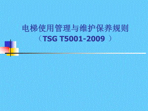 电梯使用管理与维护保养规则电梯使用管理与维护保养规则(TSG T5001-2009)背景n北京市电梯三个地方标准(强制性)北京市电梯三个地方标准(强制性)n1.电梯日常维护保养规则电梯日常维护保养规则(DB11/418-2007)n2.电梯安装维修作业安全规范电梯安装维修作业安全规范(DB11/419-2007)n3.电梯安装、改造、重大维修和维护保养自电梯安装、改造、重大维修和维护保养自检规则检规则(DB11/420-2007)背景n共四章共四章 23条条n2009年年5月月8日颁布日颁布n2009年年8月月1日实施日实施前言n本规则的编制原则是使全国电梯使用管理和维护本规则的编制原则是使全国电梯使用管理和维护保养形成一个统一的、能满足电梯安全保障和正保养形成一个统一的、能满足电梯安全保障和正常运行的基本要求,以达到规范电梯使用管理与常运行的基本要求,以达到规范电梯使用管理与维修保养工作的目的。维修保养工作的目的。目录n第一章第一章 总则总则 3条条n第二章第二章 使用管理使用管理 10条条n第三章第三章 日常维护保养日常维护保养 6条条n第四章第四章 附则附则 4条条n附件附件A乘客电梯、载货电梯日常维护保养项目(内乘客电梯、载货电梯日常维护保养项目(内容)和要求容)和要求n附件附件B液压电梯日常维护保养项目(内容)和要求液压电梯日常维护保养项目(内容)和要求n附件附件C杂物电梯日常维护保养项目(内容)和要求杂物电梯日常维护保养项目(内容)和要求n附件附件D 自动扶梯和自动人行道日常维护保养项目自动扶梯和自动人行道日常维护保养项目(内容)和要求(内容)和要求电梯使用管理与维护保养规则 第一章第一章 总则总则 第一条第一条 为了规范电梯的使用管理与维护保养行为,为了规范电梯的使用管理与维护保养行为,根据根据特种设备安全监察条例特种设备安全监察条例,制定本规则。,制定本规则。第二条第二条 本规则适用于本规则适用于特种设备安全监察条例特种设备安全监察条例适用范围内电梯的使用管理与日常维护保养工作。适用范围内电梯的使用管理与日常维护保养工作。本规则不适用于个人或者单个家庭自用的电梯。本规则不适用于个人或者单个家庭自用的电梯。电梯使用管理与维护保养规则 第三条第三条 本规则是对电梯使用管理与日常维本规则是对电梯使用管理与日常维护保养(以下简称维保)工作的基本要求,相护保养(以下简称维保)工作的基本要求,相关单位根据科学技术的发展和实际情况,可以关单位根据科学技术的发展和实际情况,可以制定高于本规则的工作要求,以保证所维保电制定高于本规则的工作要求,以保证所维保电梯的安全性能。梯的安全性能。电梯使用管理与维护保养规则 第二章第二章 使用管理使用管理 第四条第四条 使用单位应当加强对电梯的安全管使用单位应当加强对电梯的安全管理,严格执行特种设备安全技术规范(以下简称理,严格执行特种设备安全技术规范(以下简称安全技术规范)的规定,对电梯的使用安全负责。安全技术规范)的规定,对电梯的使用安全负责。使用单位应当购置符合安全技术规范的电梯,使用单位应当购置符合安全技术规范的电梯,保证电梯安全运行所必需的投入,严禁购置国家保证电梯安全运行所必需的投入,严禁购置国家明令淘汰的产品。明令淘汰的产品。电梯使用管理与维护保养规则 第五条第五条 使用单位应当根据电梯安全技术规范以使用单位应当根据电梯安全技术规范以及产品安装使用维护说明书的要求和实际使用状况,及产品安装使用维护说明书的要求和实际使用状况,组织进行维保。组织进行维保。使用单位应当委托取得相应电梯维修项目许可的使用单位应当委托取得相应电梯维修项目许可的单位(以下简称维保单位)进行维保,并且与维保单单位(以下简称维保单位)进行维保,并且与维保单位签订维保合同,约定维保的期限、要求和双方的权位签订维保合同,约定维保的期限、要求和双方的权利义务等。维保合同至少包括以下内容:利义务等。维保合同至少包括以下内容:电梯使用管理与维护保养规则(一一)维保的内容和要求;维保的内容和要求;(二二)维保的时间频次与期限;维保的时间频次与期限;(三三)维保单位和使用单位双方的权利、义维保单位和使用单位双方的权利、义务与责任。务与责任。电梯使用管理与维护保养规则 安全法第四十五条 电梯的维护保养应当由电梯制造单位或者依照本法取得许可的安装、改造、修理单位进行。电梯的维护保养单位应当在维护保养中严格执行安全技术规范的要求,保证其维护保养的电梯的安全性能,并负责落实现场安全防护措施,保证施工安全。电梯的维护保养单位应当对其维护保养的电梯的安全性能负责;接到故障通知后,应当立即赶赴现场,并采取必要的应急救援措施。电梯使用管理与维护保养规则 与与条例条例表述不一致,表述不一致,条例条例第三十一第三十一条条 电梯的日常维护保养必须由依照本条例取得许可的安装、改造、维修单位或者电梯制造单位进行。电梯应当至少每15日进行一次清洁、润滑、调整和检查。电梯使用管理与维护保养规则 条例第三十二条 电梯的日常维护保养单位应当在维护保养中严格执行国家安全技术规范的要求,保证其维护保养的电梯的安全技术性能,并负责落实现场安全防