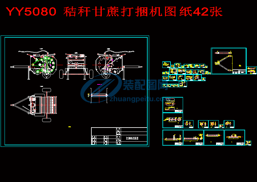 【CAD图纸】YY5080 秸秆甘蔗打捆机CAD装配图+零件图