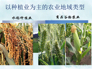 以种植业为主的农业地域类型商品谷物农业水稻种植业亚洲水稻种植业在世界上的生产地位东亚南亚东 南 亚1、分布:一、水稻种植业亚洲地理区域划分 水稻是好暖喜湿作物,在生长期内要求有较高的气温。水稻又是需水量很大的作物,生长期内需求降水量在750毫米以上,总需水量相当于旱粮的24倍。水稻种植要求田地平整,排灌方便。水稻种植的生产过程复杂,劳动强度大,需要投入大量的劳动力。水稻种植主要分布在亚洲地区。探究一探究一亚洲发展水稻种植业的优势区位亚洲发展水稻种植业的优势区位条件有哪些?条件有哪些?自然条件气候土壤地形农业区位社会经济条件影响农业区位的因素市场交通政策劳动力地价资金科技亚洲水稻种植业优势区位条件(夏季高温,热量充足;降水丰沛,雨热同期,适合水稻生长)平原、三角洲:地形平坦,土壤肥沃,水源充足,便于排灌小麦玉米水稻单产(Kg)248407510人口稠密:劳动力丰富,有利于精耕细作;粮食需求量大,适合种植单产高的水稻。水稻在当地有着悠久的种植史,人们喜爱吃稻米。规律总结 亚洲水稻生产的区位因素区位因素区位因素区区 位位 优优 势势自自然然因因素素气气 候候地形地形水源水源社社会会经经济济因因素素劳动力劳动力人人 均均耕耕 地地生生 产产历历 史史饮饮 食食习习 惯惯地势低平,排灌方便水源充足,便于灌溉人口稠密,劳动力丰富人多地少,水稻单产高,能缓解人口对土地的压力食米爱好,市场广阔 李某家住在江淮平原上。全家六口人,上有两位老人,下有两个上学的孩子。李某承包了5亩土地,农活主要由他和妻子来做。美国一个小农场拥有225亩土地。小农经营,经营规模小3、水稻种植业的特点 一般情况下,李某用3亩田种双季稻,1亩田种单季稻,1亩田种其他作物。他家每年约收稻谷3800千克(双季稻产量为1000千克/1亩)单位面积产量高500407248单产(千克/亩)水稻玉米小麦粮食作物南方三种主要粮食作物单产对比 在收成的3800千克当中,2500千克留作家庭口粮、饲料用粮及上缴公粮,其余的1300千克到市场上出售。商品率低商品率粮食总产量粮食出售量3800130034.21%李某家与另外5家村邻共同购买了一头耕牛、一台水泵、一台电动脱粒机。其他小型农具每家自备。机械化、科技水平较低水泵电动脱粒机 令李某最为头痛的是每年的水旱灾害,每当发生灾害的年份,农田的经济损失就很大。而李某又无力建设水利工程,需要政府大力投资并组织水利工程建设。需要水利工程量大合作探究加大科技投入,提高机械化水平合作探究 日本的水稻种植业日本的水稻种植业 日本是一个日本是一个人多地少人多地少以水稻生产为主的国家,水以水稻生产为主的国家,水稻稻种植方式与我国大体相同种植方式与我国大体相同。1970年左右在较好年左右在较好地解决农艺与机械结合的难题后,在水稻育秧、地解决农艺与机械结合的难题后,在水稻育秧、插秧、病虫害防治、收获、干燥等生产环节基本插秧、病虫害防治、收获、干燥等生产环节基本上实现了上实现了机械化机械化,20世纪世纪80年代实现了农业生产年代实现了农业生产的的高度机械化。高度机械化。普遍采用普遍采用适和地块小、水田作业适和地块小、水田作业的小型农机具的小型农机具,投入的生产资料多,投入的生产资料多,单位面积产单位面积产量高,商品率也较高量高,商品率也较高。日本的带土苗插秧机高、。日本的带土苗插秧机高、中、低档规格俱全,每种机器各具特色,可满足中、低档规格俱全,每种机器各具特色,可满足不同层次用户的需要。不同层次用户的需要。【拓展视野】二、商品谷物农业(现代旱作谷物农业)1、农作物:小麦、玉米 家庭经营 2、经营方式:3、美国是世界最大的商品谷物生产国 美国、加拿大、阿根廷、澳大利亚、俄罗斯、乌克兰等国思考:请从自然因素和社会经济因素两个方面分析美国中央大平原发展商品谷物农业的区位条件?地形美国中部大平原上地势平坦开阔、土壤肥沃,便于机械化耕作温带大陆性气候区,这里气候温和,降水比较丰富芝加哥气温曲线降水柱状图该国地图该国地图 请在此处添加该国家的地形、政区图。水源世界第四长河密密西比河,干流纵贯中部平原,支流有多条可通航,多呈东西流向。有运河与五大湖相通,形成庞大,便利的水运网。占全国总货运量的以上。交通(1 1)自然条件优越。)自然条件优越。地势平坦广阔;土壤肥沃;水源充足;气候温和。地势平坦广阔;土壤肥沃;水源充足;气候温和。(2 2)交通运输便利。)交通运输便利。五大湖与密西西比河航运,与发达的公路、铁路相衔接,构成四五大湖与密西西比河航运,与发达的公路、铁路相衔接,构成四通八达的交通运输网。通八达的交通运输网。(3 3)地广人稀、市场广阔)地广人稀、市场广阔(4 4)工业高度发达,为农业生产提供现代化的农业机械)工业高度发达,为农业生产提供现代化的农业机械,以及以及电力、化肥、农药等电力、化肥、农药等。农业机械向大型、宽幅、高速、联合作业。农业机械向大型、宽幅、高速、联合作业方面发展。有的农场播种、施肥、喷洒农药等,还使用飞机作业。方面发展。有的农场播种、施肥、喷洒农药等,还使用飞机作业。(5 5)农业科技先进。)农业科技先进。优越的优越的自然条件自然条件和便利的和